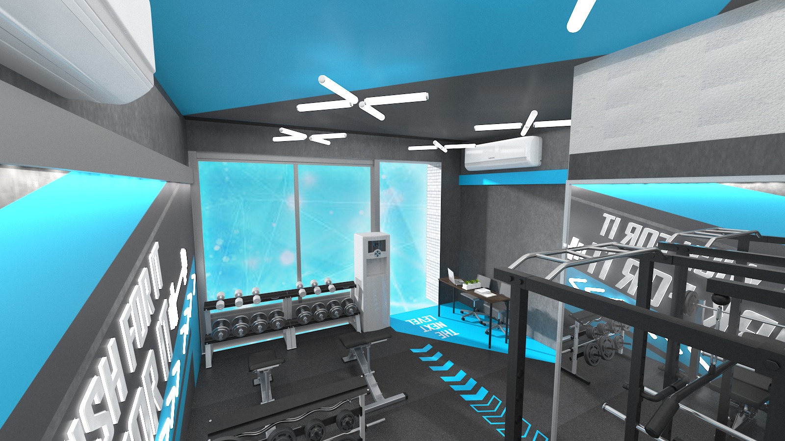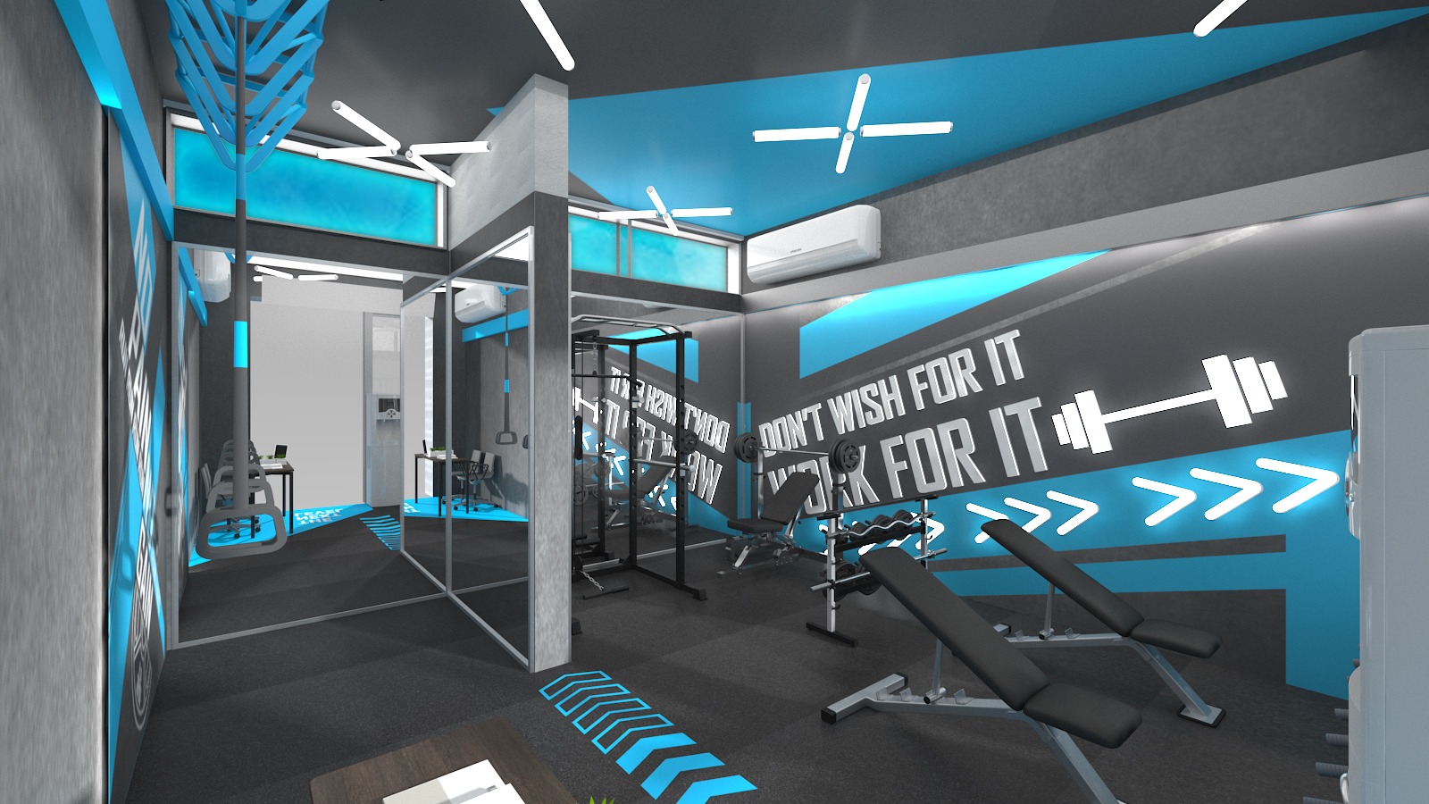 * 通風與空調系統:改善健身室的通風系統和空調設施,確保室內空氣流通和溫度舒適。